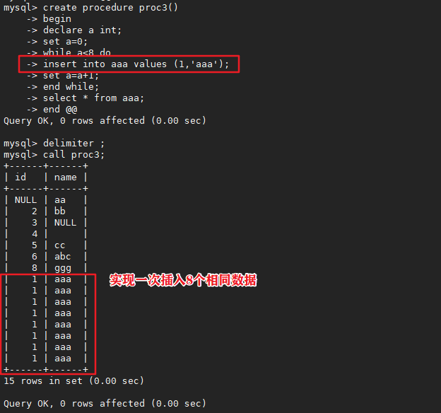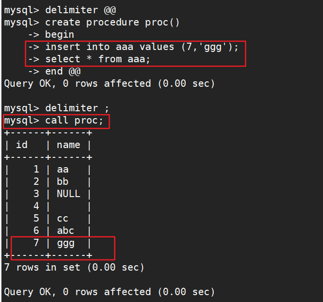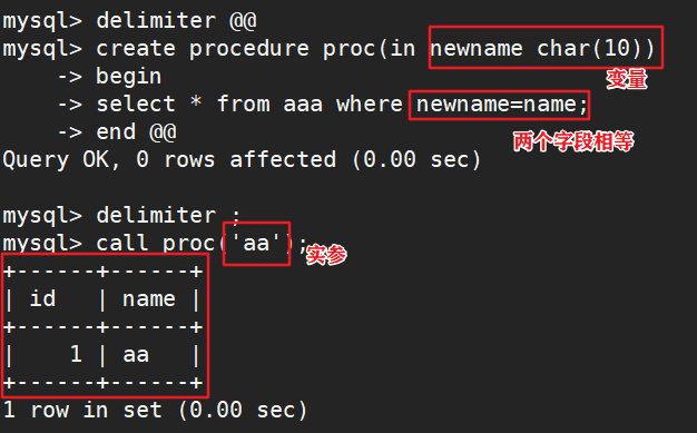 delimiter 结束符 #将语句的结束符号从分号;临时修改,以防出问题,可以自定义