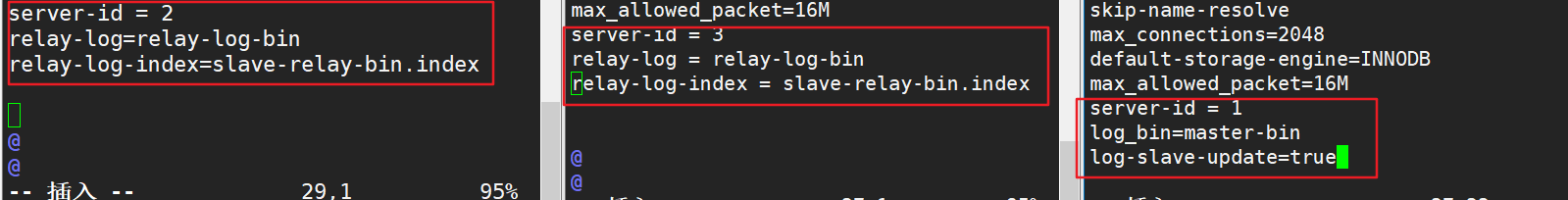 server-id = 2 #三台 服务器的 server-id 不能一样