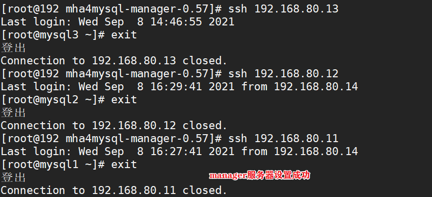 - 2.3.3、在 MHA manager(192.168.80.14)节点上安装 manager 组件