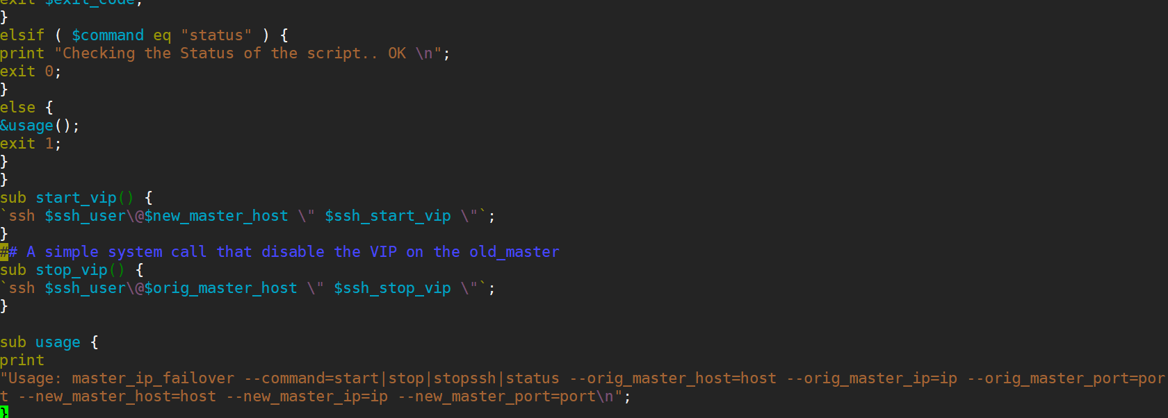 "Usage: master_ip_failover --command=start|stop|stopssh|status --orig_master_host=host --orig_master_ip=ip --orig_master_port=port --new_master_host=host --new_master_ip=ip --new_master_port=port\n";
