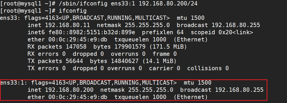 /sbin/ifconfig ens33:1 192.168.80.200/24