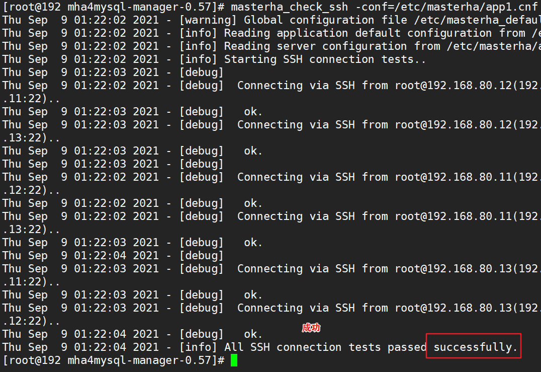 masterha_check_ssh -conf=/etc/masterha/app1.cnf