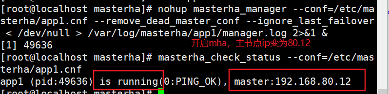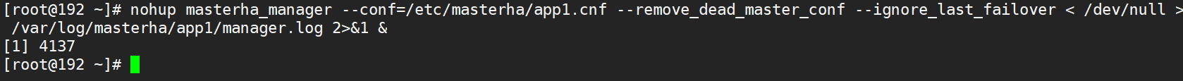nohup masterha_manager --conf=/etc/masterha/app1.cnf --remove_dead_master_conf --ignore_last_failover < /dev/null > /var/log/masterha/app1/manager.log 2>&1 &