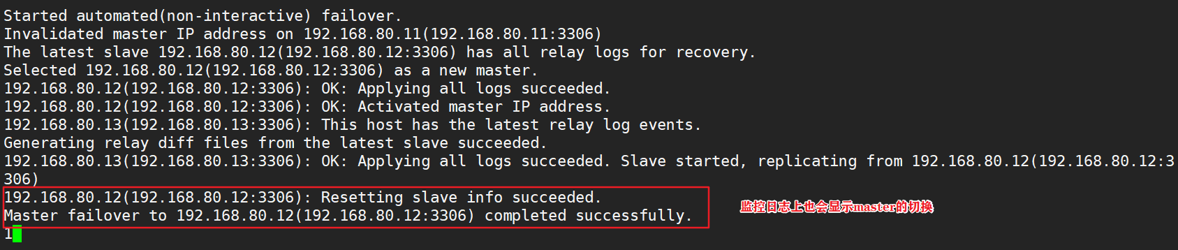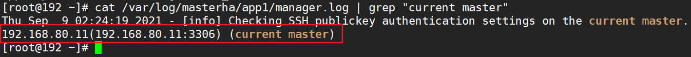 cat /var/log/masterha/app1/manager.log | grep "current master"