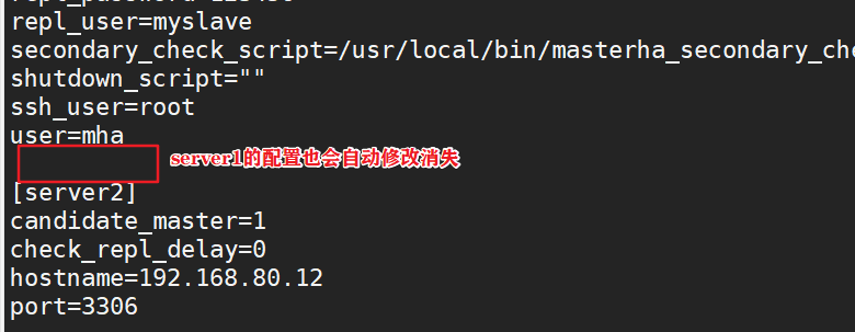 #在 manager 节点上修改配置文件app1.cnf(再把这个记录添加进去,因为它检测掉失效时候会自动消失)