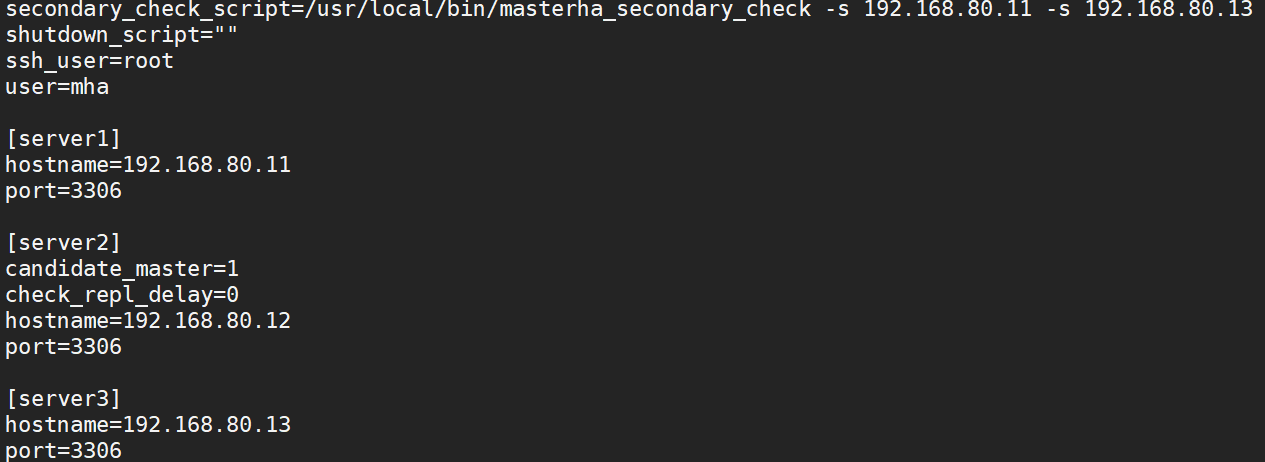 secondary_check_script=/usr/local/bin/masterha_secondary_check -s 192.168.80.12 -s 192.168.80.13