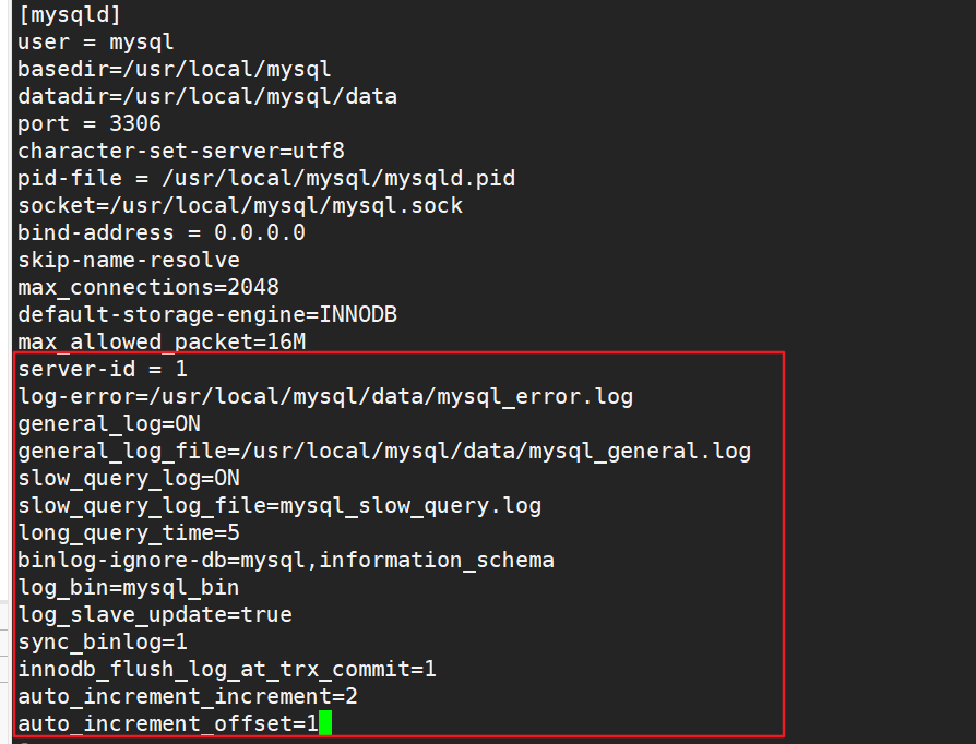 log_bin=mysql_bin #开启二进制日志用于主从数据复制
