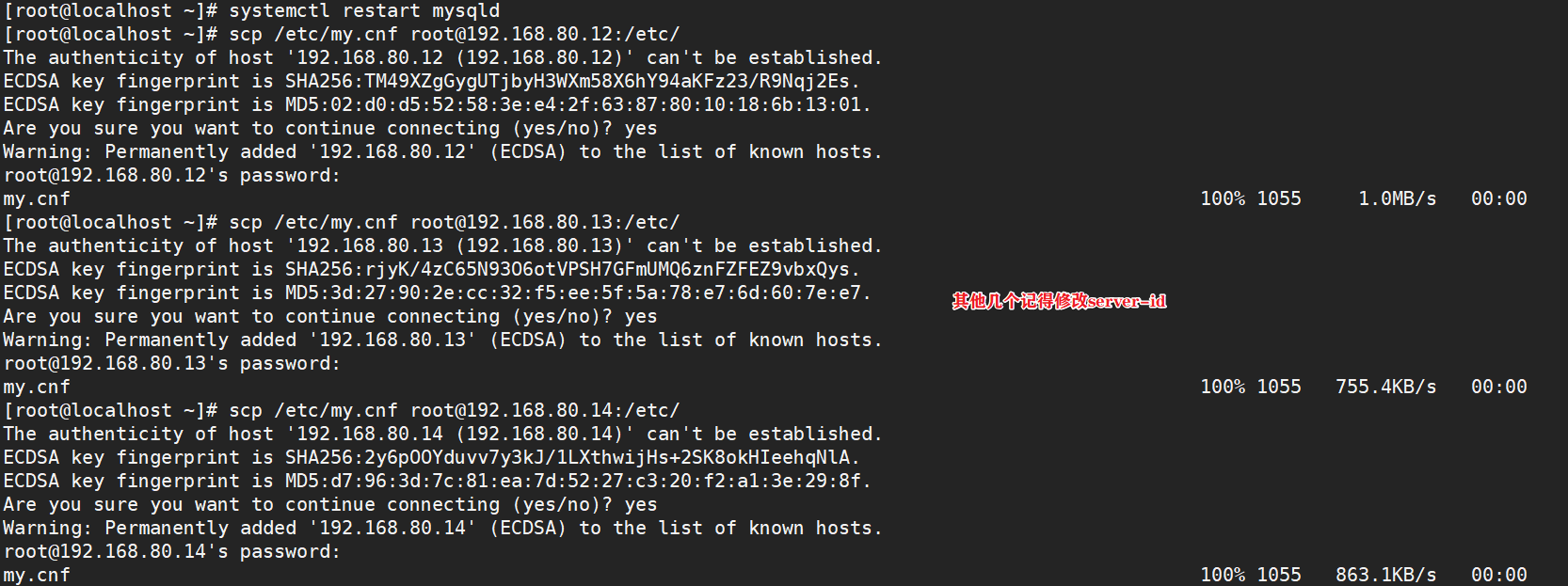 scp /etc/my.cnf root@192.168.80.12:/etc/