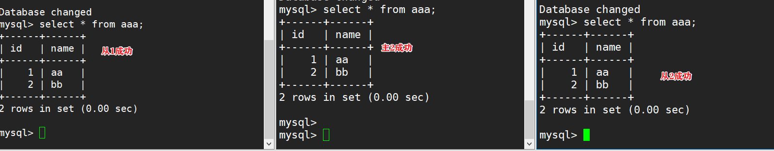 2.2.3、测试主主、主从 同步情况