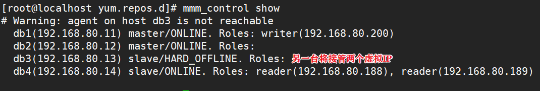 db3(192.168.80.13) slave/ONLINE. Roles: reader(192.168.80.188)