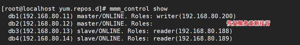 db4(192.168.80.14) slave/ONLINE. Roles: reader(192.168.80.189)