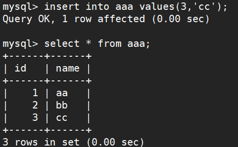 insert into aaa values (3,'cc');