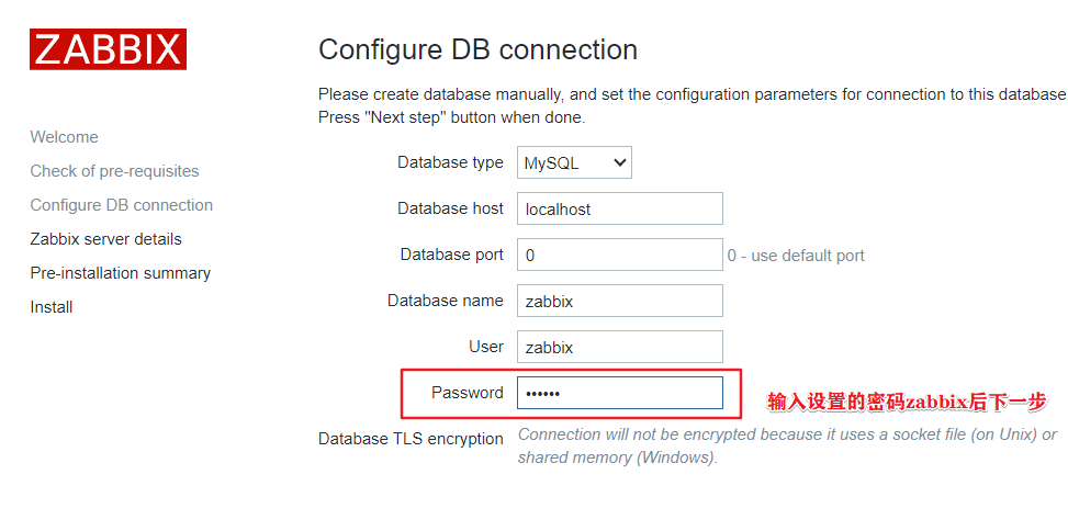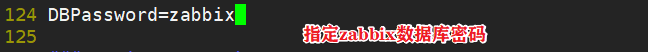 DBPassword=zabbix #124行,指定 zabbix 数据库的密码