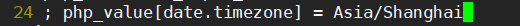 php_value[date.timezone] = Asia/Shanghai #24行,取消注释,修改时区