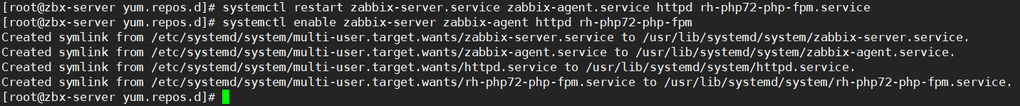 systemctl restart zabbix-server zabbix-agent httpd rh-php72-php-fpm