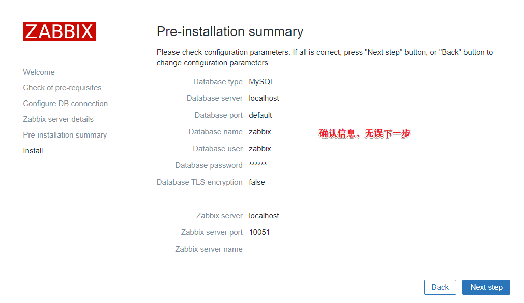 6.4、添加数据库用户,以及 zabbix 所需的数据库信息