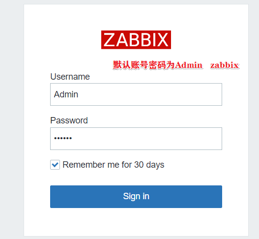 安装完成后,默认的登录账号和密码为:Admin/zabbix