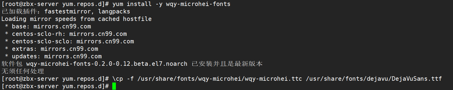 \cp -f /usr/share/fonts/wqy-microhei/wqy-microhei.ttc /usr/share/fonts/dejavu/DejaVuSans.ttf