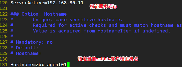 Hostname=zbx-agent01 #131行,指定当前 zabbix 客户端的主机名