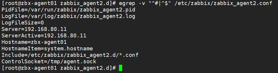 egrep -v "^#|^$" /etc/zabbix/zabbix_agent2.conf