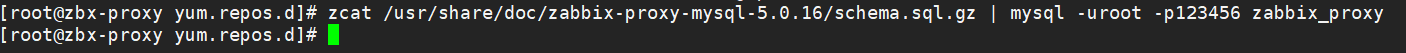 zcat /usr/share/doc/zabbix-proxy-mysql-5.0.15/schema.sql.gz | mysql -uroot -pabc123 zabbix_proxy