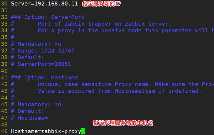 Hostname=zbx-proxy #49行,指定当前 zabbix 代理服务器的主机名