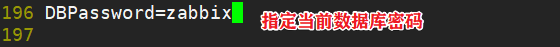 DBPassword=zabbix #196行,指定当前数据库 zabbix 用户的密码