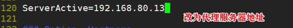 ServerActive=192.168.80.13 #120行,指定 zabbix 代理服务器的 IP 地址