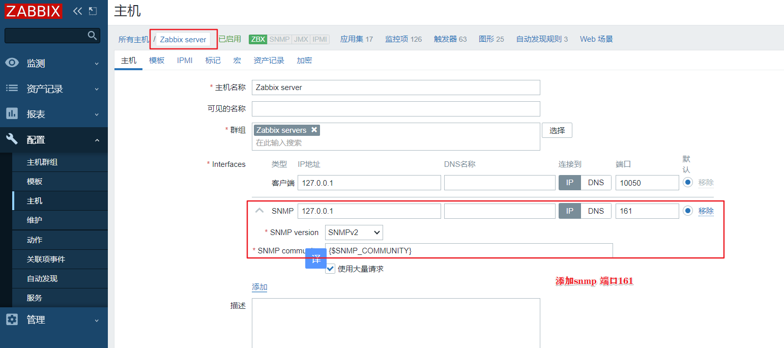 【Interfaces】点击【添加】选择 SNMP ,端口设置成 161