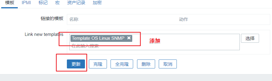 再在【Link new templates】中搜索 Linux SNMP,选择 Template OS Linux SNMP