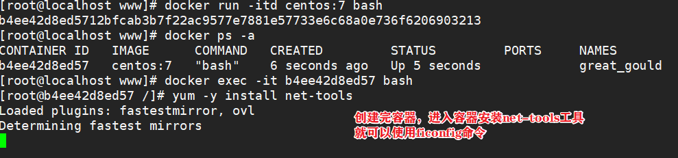 1.1.1、首先启动一个镜像,在容器里做修改