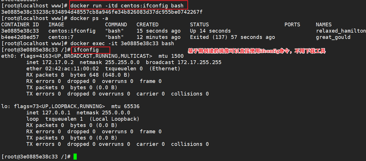 如果在docker run时指定了命令或者镜像中有ENTRYPOINT,那么CMD就会被覆盖