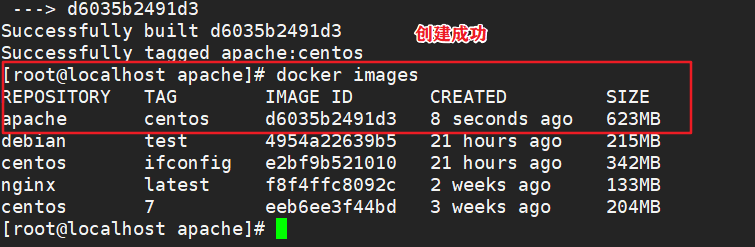 docker build -t apache:centos . #末尾有“.”