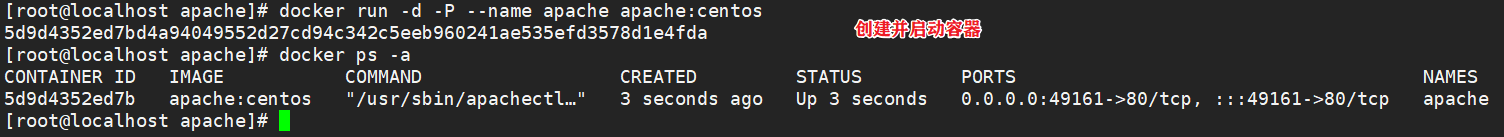 docker run -itd -P apache:centos bash
