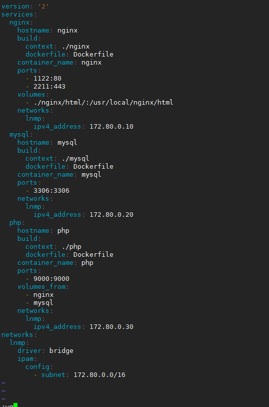 | volumes | 挂载一个宿主机目录或命令卷到容器,命令卷要在顶级volumes定义卷名称 |