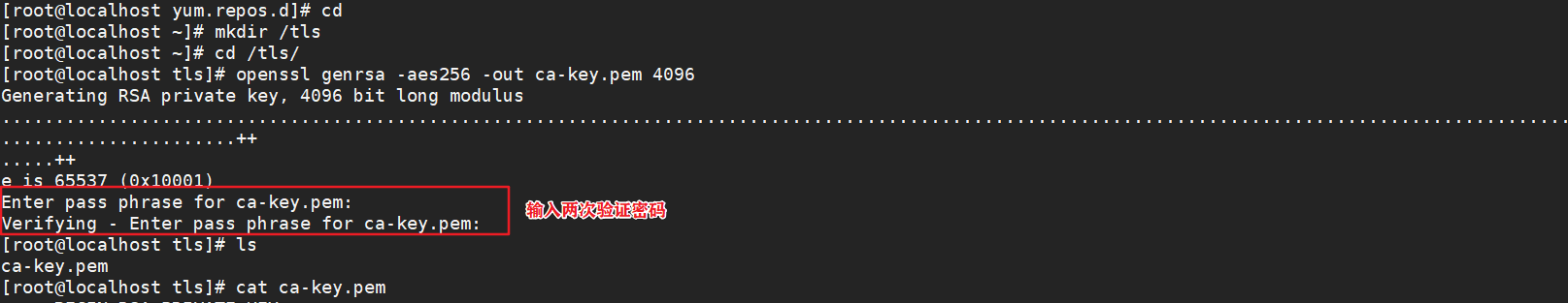 openssl genrsa -aes256 -out ca-key.pem 4096 #输入123456