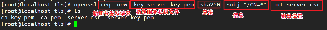 openssl req -new -key server-key.pem -sha256 -subj "/CN=*" -out server.csr