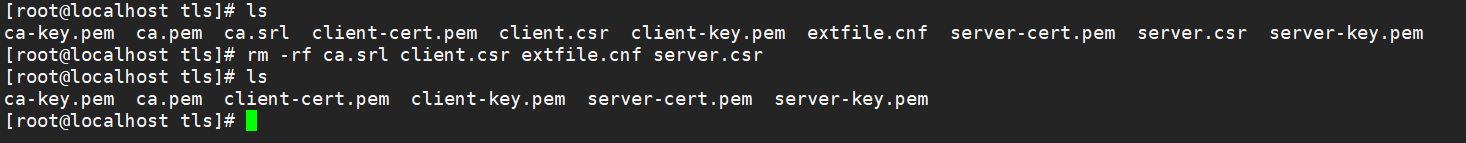 rm -rf ca.srl client.csr extfile.cnf server.csr