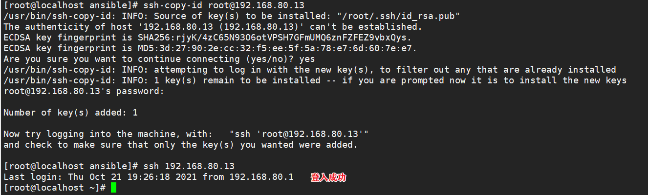 sshpass -p 'abc1234' ssh-copy-id root@192.168.80.13