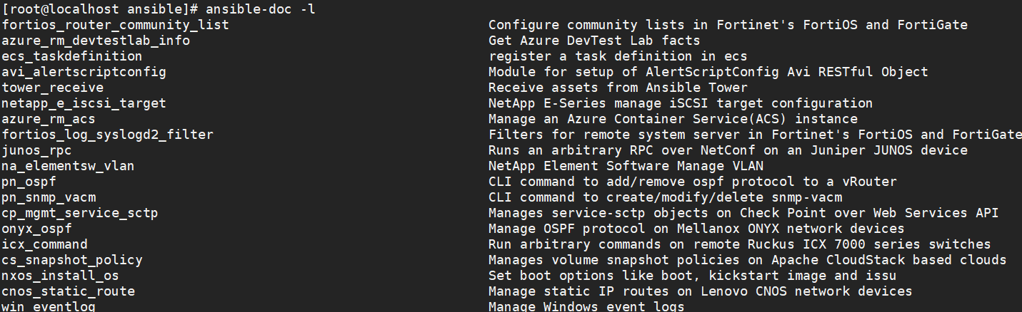 ansible-doc -l #列出所有已安装的模块,按q退出