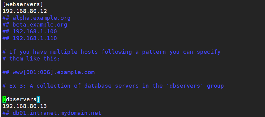 192.168.80.12 #组里包含的被管理的主机IP地址或主机名(主机名需要先修改/etc/hosts文件)