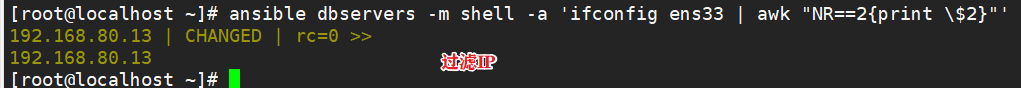 ansible dbservers -m shell -a 'echo $(ifconfig ens33 | awk "NR==2 {print \$2}")'