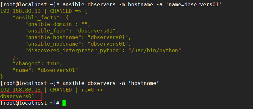 ansible dbservers -m user -a 'name="test01"' #创建用户test01
