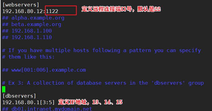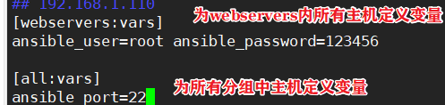 [webservers:vars] #表示为 webservers 组内所有主机定义变量
