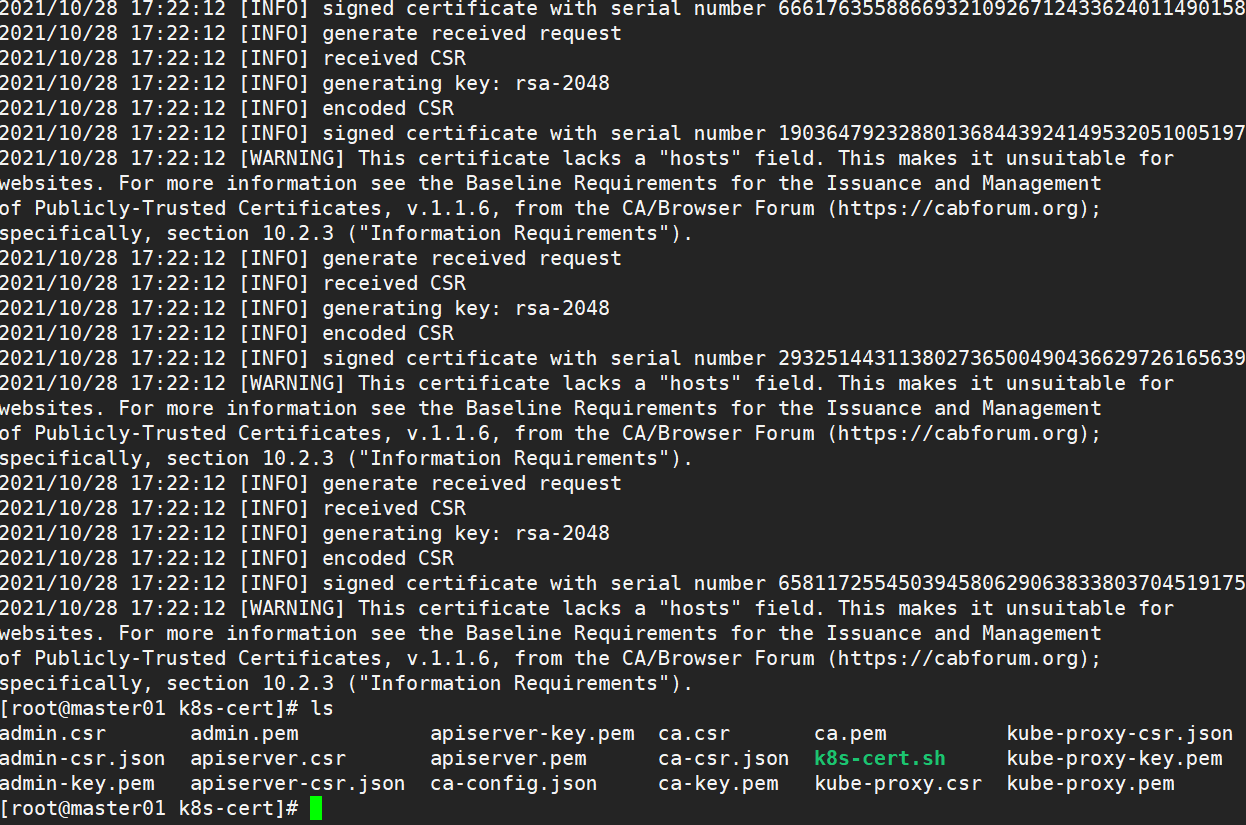 再次查看CSR请求状态,Approved,issued表示已授权CSR请求并签发证书(master01上操作)