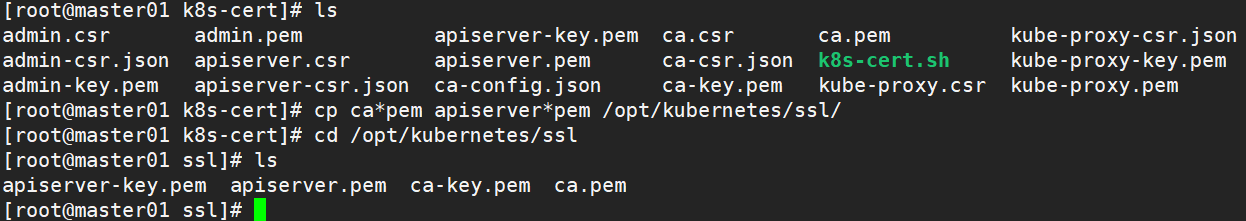 - 5.4、复制CA证书、apiserver相关证书和私钥到kubernetes工作目录的ssl子目录中