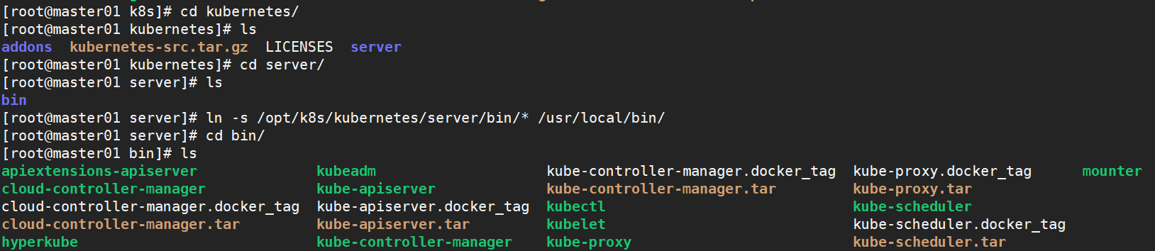 - 5.6、复制master组件的关键命令文件到kubernetes工作目录的bin子目录
