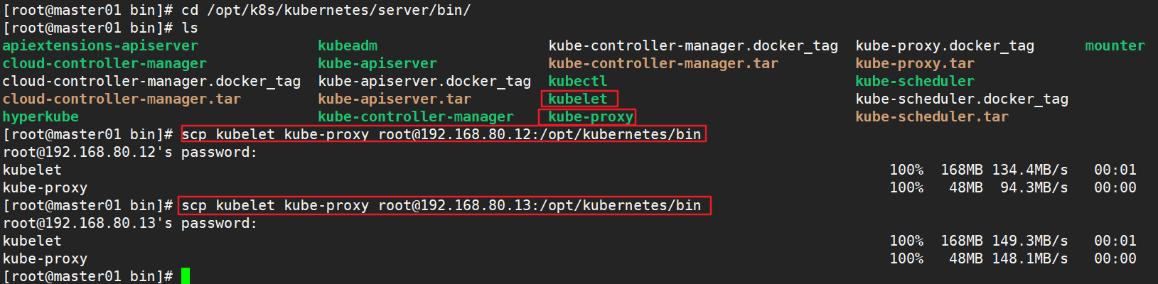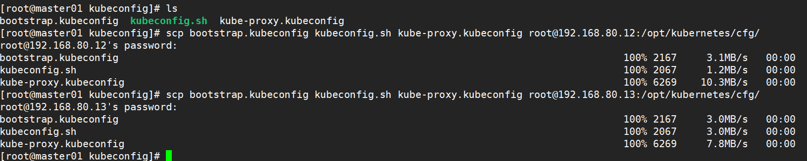 scp bootstrap.kubeconfig kube-proxy-kubeconfig root0192.168.80.12:/opt/kubernetes/cfg/
