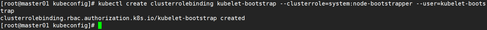 kubectl create clusterrolebinding kubelet-bootstrap --clusterrole=system:node-bootstrapper --user=kubelet-bootstrap