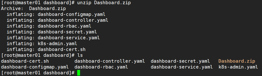 dashboard-configmap.yaml dashboard-rbac.yaml dashboard-service.yaml dashboard-controller.yaml dashboard-secret.yaml k8s-admin.yaml dashboard-cert.sh